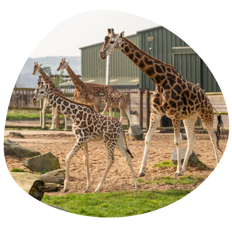 You can meet our tower either on the Safari Drive, or on the African Walking Trail, where you may also see the babies - Namara (born in October 2025) and Olive (born January 2026).