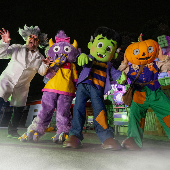 Get ready to encounter Patch, our pumpkin-headed scarecrow, and Mitzy, the mischievous monster, as they roam the Park! With plenty of cheeky antics and photo ops, be sure to snap a pic with these spooky stars as they spread Halloween mischief. Who knows what mayhem they'll get up to next?
